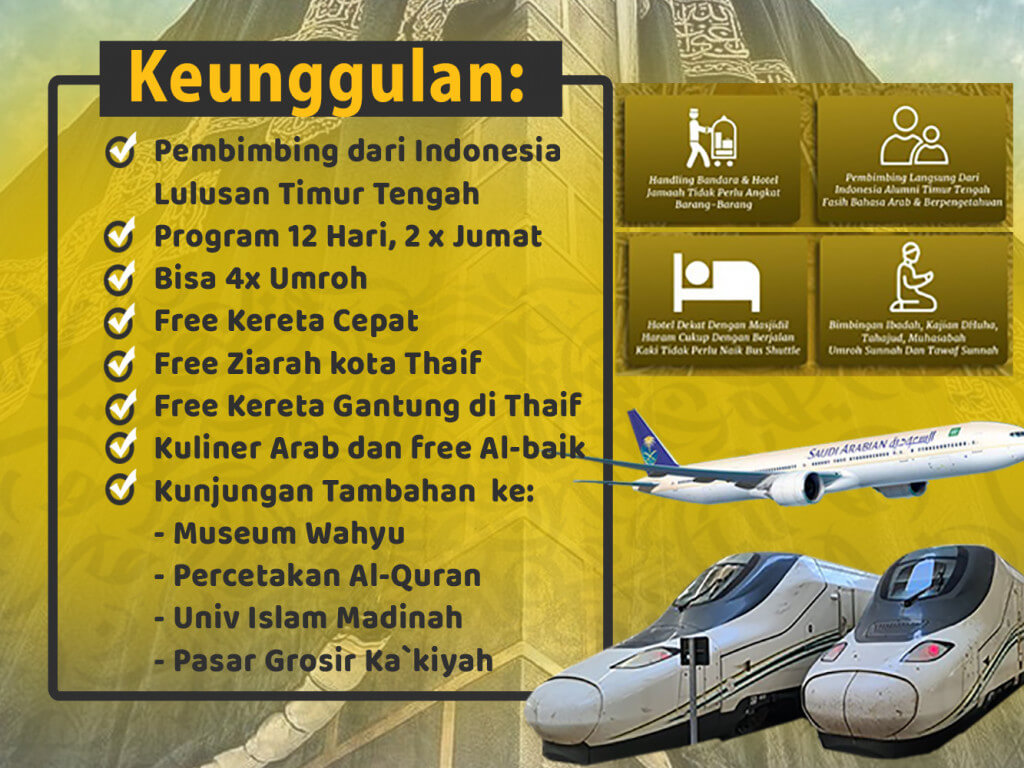 Umrah Plus Thaif + Kereta Cepat (12 Hari) Agustus 2023