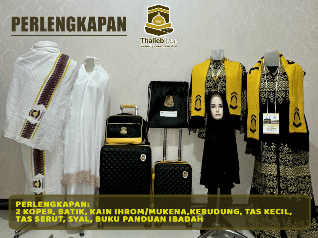 - Perlengkapan : Koper kabin, koper bagasi, tas paspor, kain ihram/mukena, kerudung, buku manasik, kain seragam, syal