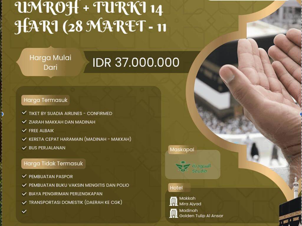 UMROH + TURKI 14 HARI (28 MARET - 11 APRIL 2025)